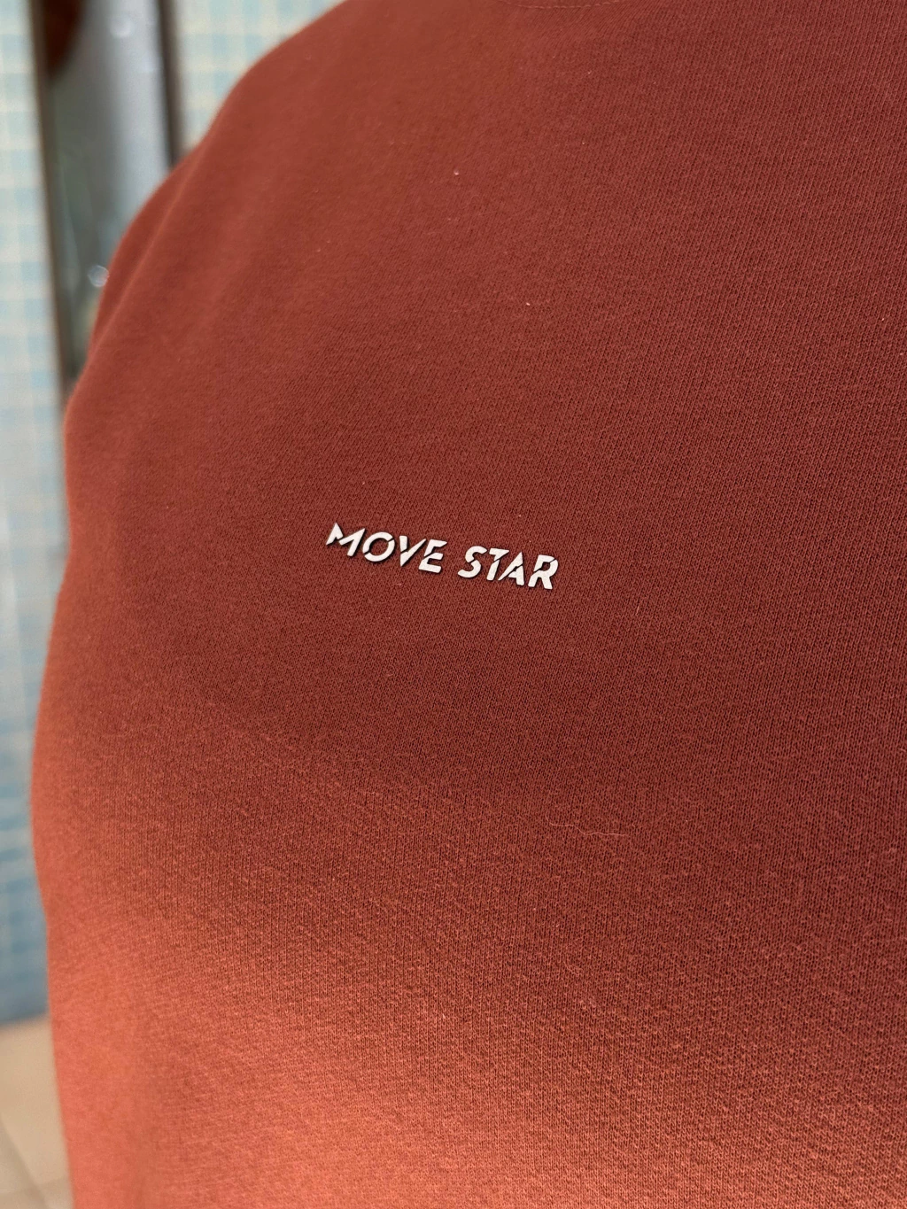 A estampa minimalista “MOVE STAR” centralizada no peito reforça a identidade da marca com elegância e presença.